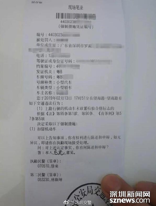 经调查,涉事车辆逾期未检验(图片来自深圳交警微博)