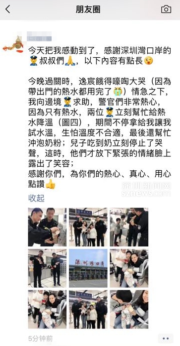 受助旅客发圈感谢深圳湾边检民警