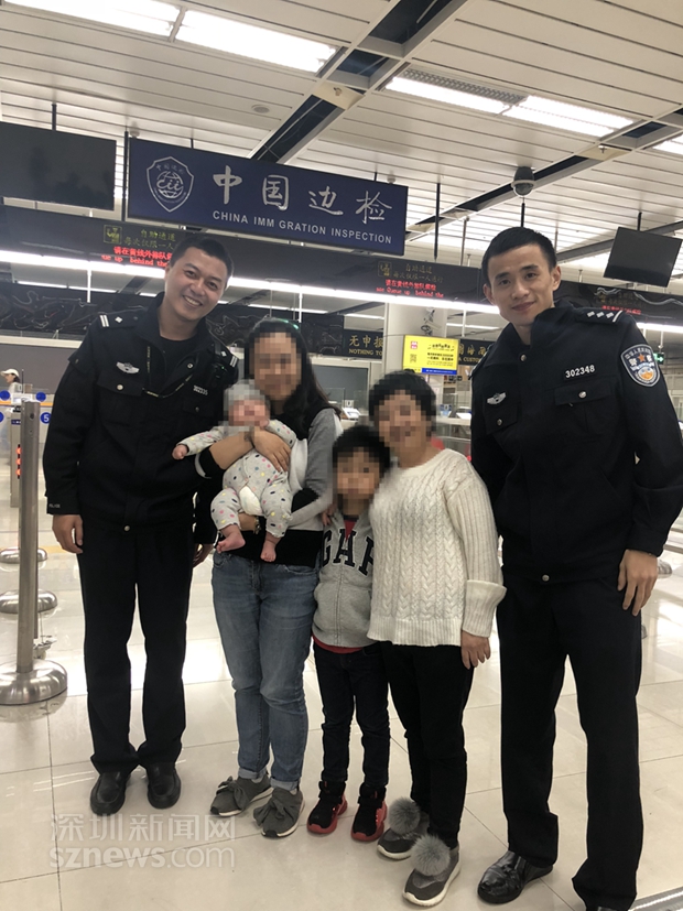 受助旅客与深圳湾边检民警合影留念