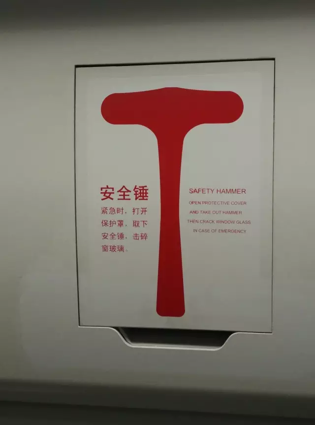 安全锤安装于列车侧顶上方的盒体内,每节车设有4个。当列车发生紧急情况时,乘客可打开保护罩取下安全锤,用锤子击碎窗玻璃逃生。