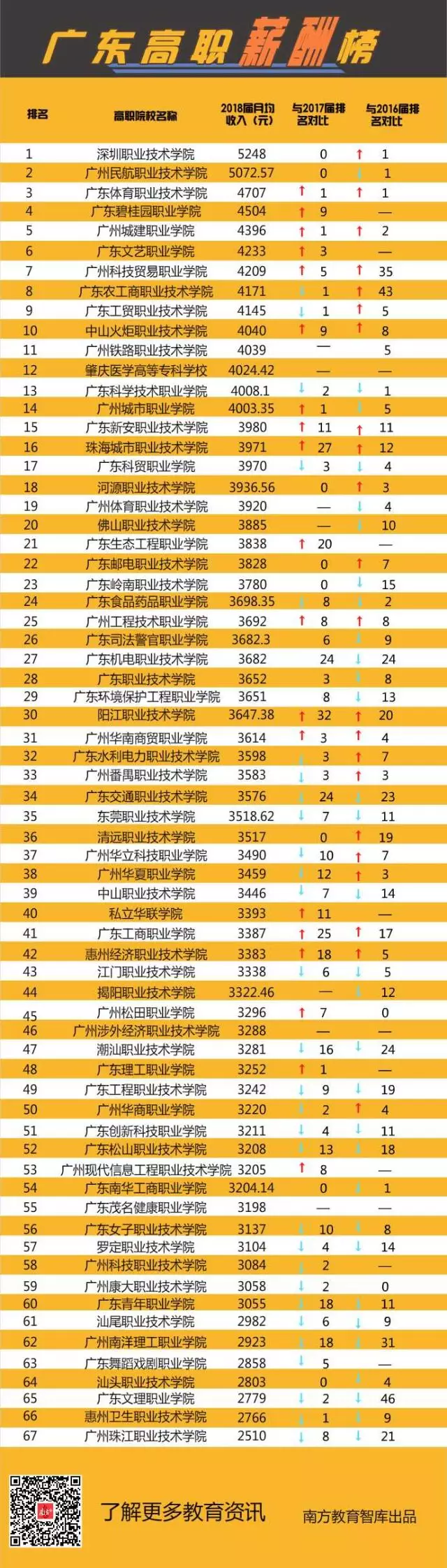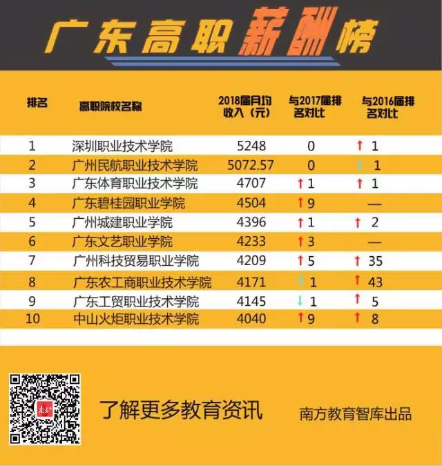 ▲广东高职薪酬10强,深职院、广州民航平均月薪超5000元,超过不少本科院校。