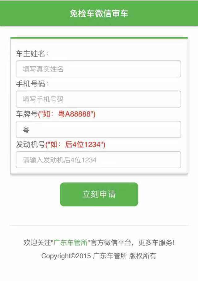 小南在随机出现的“年审广东车辆”和“审核广东车辆”两个平台尝试发现,关注该公众号进入页面后,会要求回复姓名查询年审车辆状态,随后出现页面以下钓鱼网站:
