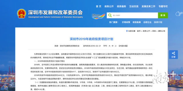 南方+客户端2019年2月22日讯 日前,深圳市发改委发布《深圳市2019年政府投资项目计划》(以下简称《计划》)。《计划》总结了2018年深圳市政府投资项目计划执行情况,并对2019年政府投资项目计划安排情况进行通报。