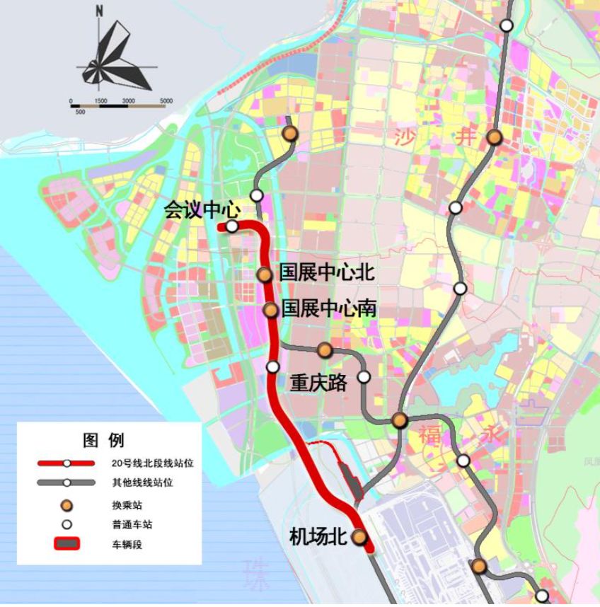 20号线北段主要服务国际会展中心、国际会议中心、科技馆等临湾片区大型公共设施,并为其提供与宝安机场 T4航站楼联系。