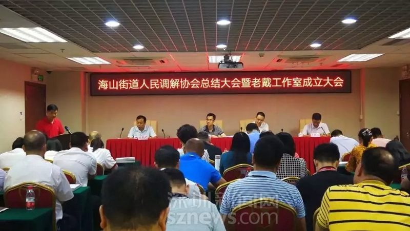 2018年11月8日,海山街道召开大会宣布“老戴工作室”正式揭牌成立。这下,戴南泉又有新的使命了。海山街道现有112名调解员,其中,专职调解员共5名。随着社区经济不断发展,生活矛盾经济纠纷日益增多,也在呼唤着更多专业敬业的人民调解员加入到营造共建共治共享社会治理新格局的工作中来。