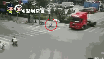 转角遇上“鬼探头”!摩托车闯红灯遇 ...