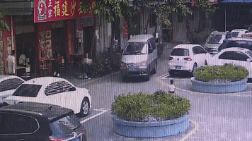 11月11日中午1点左右,在龙华观澜的华朗嘉工业园的生活区内,一辆面包车正打算左转,撞上了蹲在玩耍的孩子。