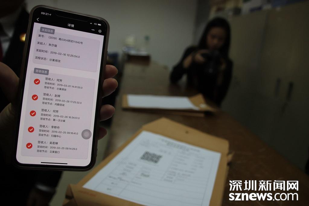 法官谢婷展示福田法院的流码案件流转系统,该系统可节省80%的签卷时间