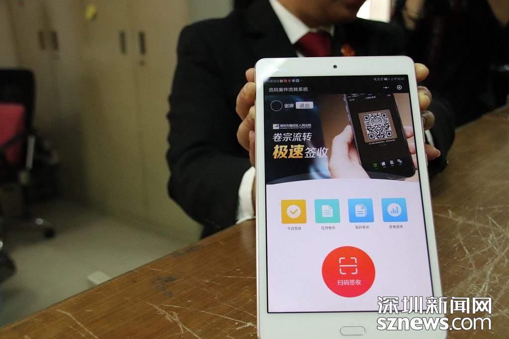 法官谢婷展示福田法院的流码案件流转系统,该系统可节省80%的签卷时间