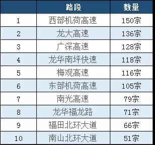 2018年接报涉及行人进入高快速路排名前十的路段是:
