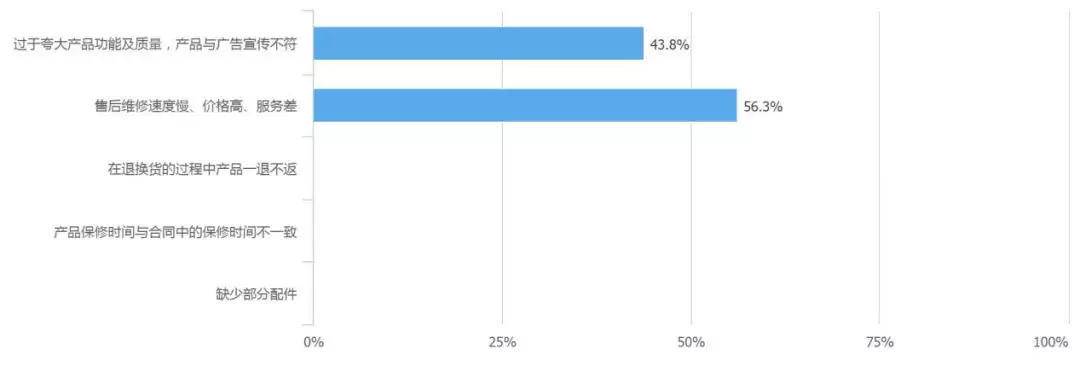 用户最关心的问题,售后维修依然是重灾区,56.3%的网上消费者更关心售后维修问题,维修速度慢、价格高、服务差是网上消费者对数码家电售后领域普遍的认知。