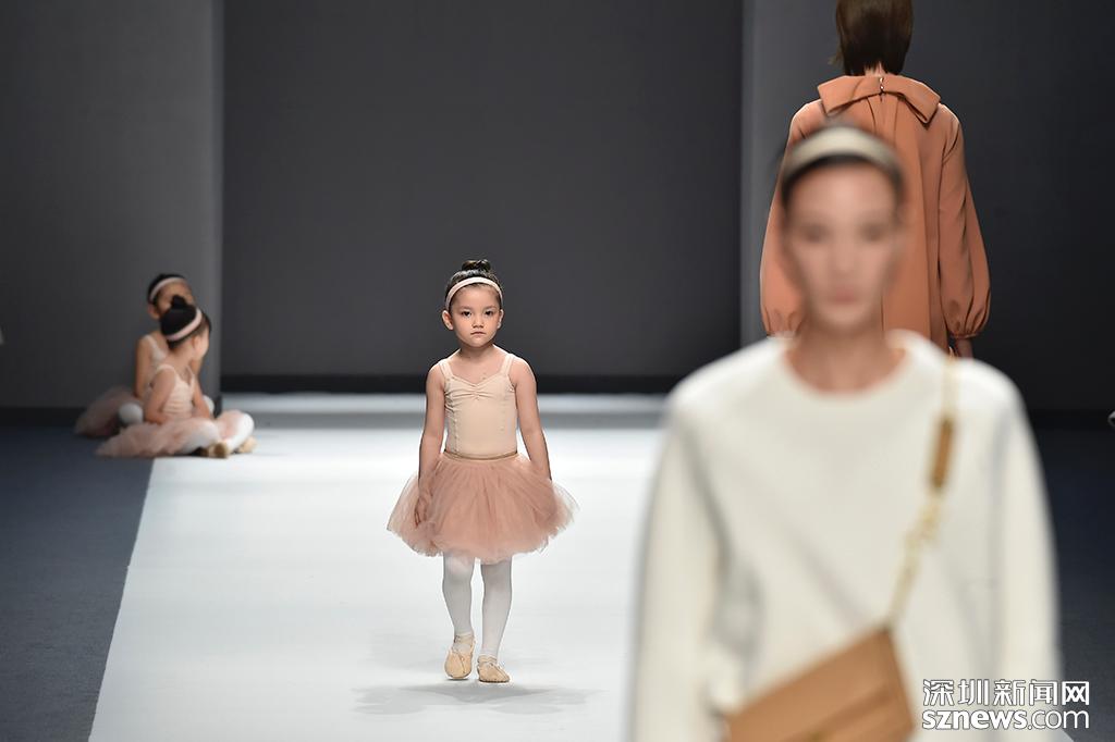 品牌OBBLIGATO展示环节,参展的一位小孩子望向正在走台的模特