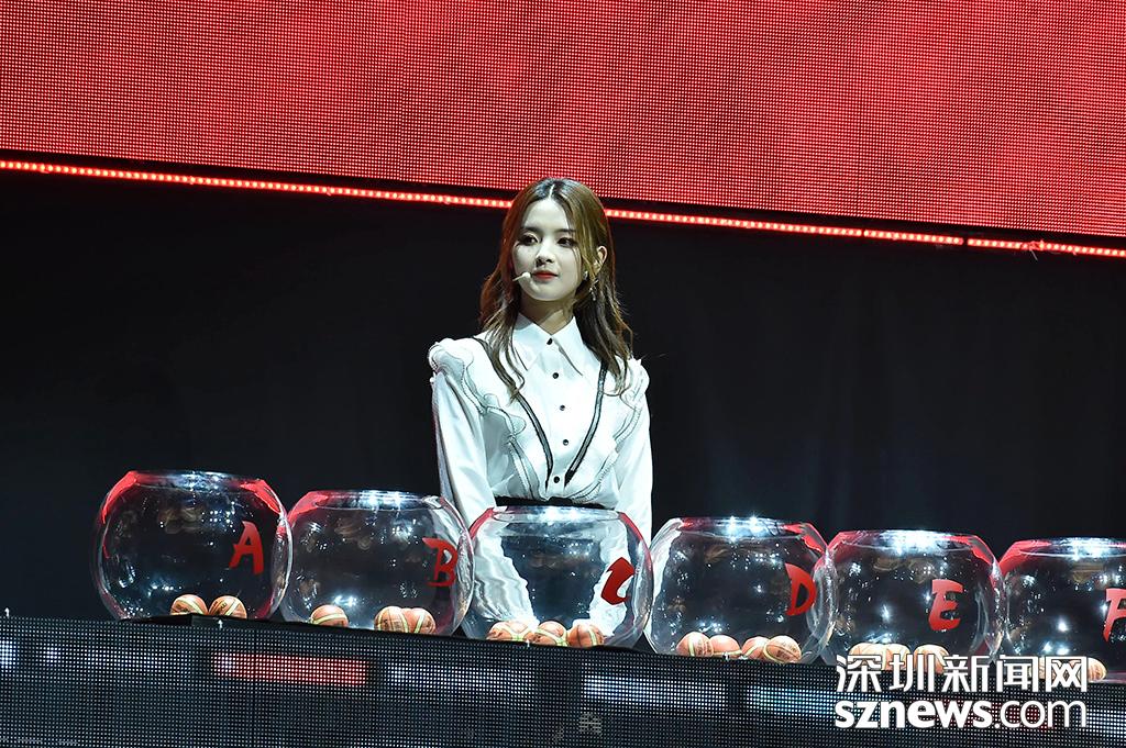 网络红人杨超越在抽签仪式亮相并和科比合作进行抽签