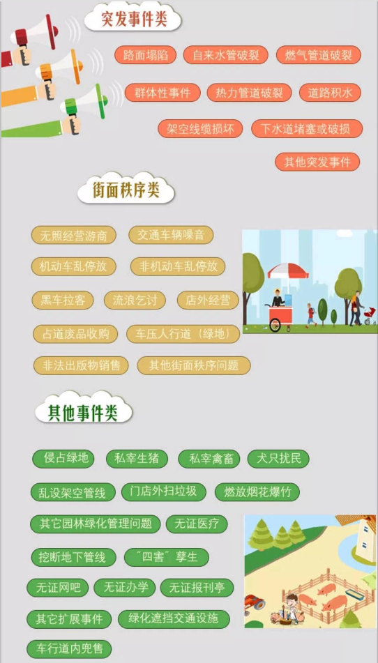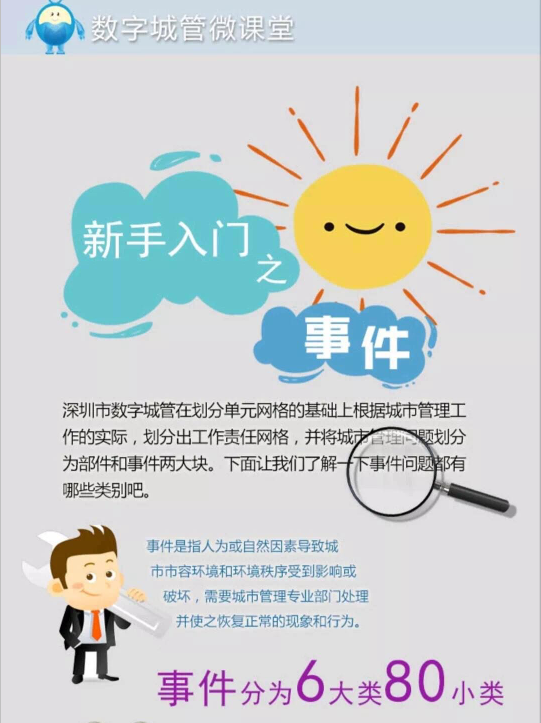 深圳数字城管工作责任网格——事件部分,市民可通过关注图片底部公众号参加城市管理