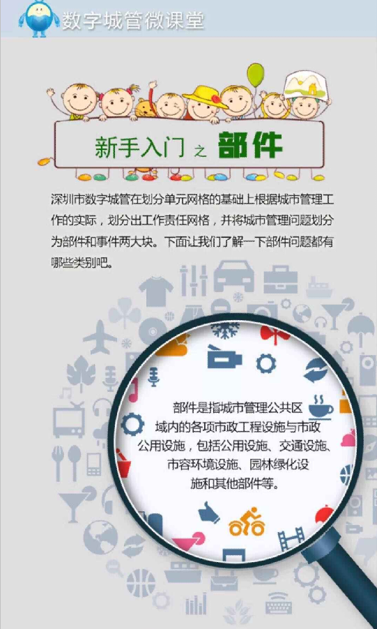 深圳数字城管工作责任网格——部件部分,市民可通过关注图片底部公众号参加城市管理