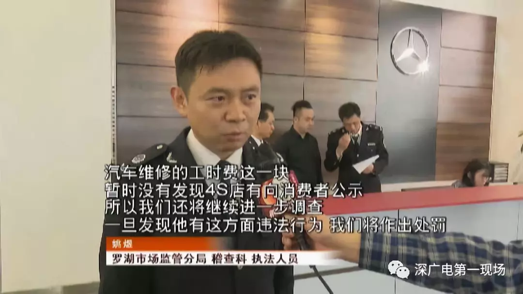 随后,罗湖市场监管分局的执法人员,对这家大兴奔驰4S店的配件仓库、明码标价情况、现场广告宣传等方面进行了例行检查,在检查中,执法人员发现,车辆的零部件产品和维修工时费均未按规定明码标价。