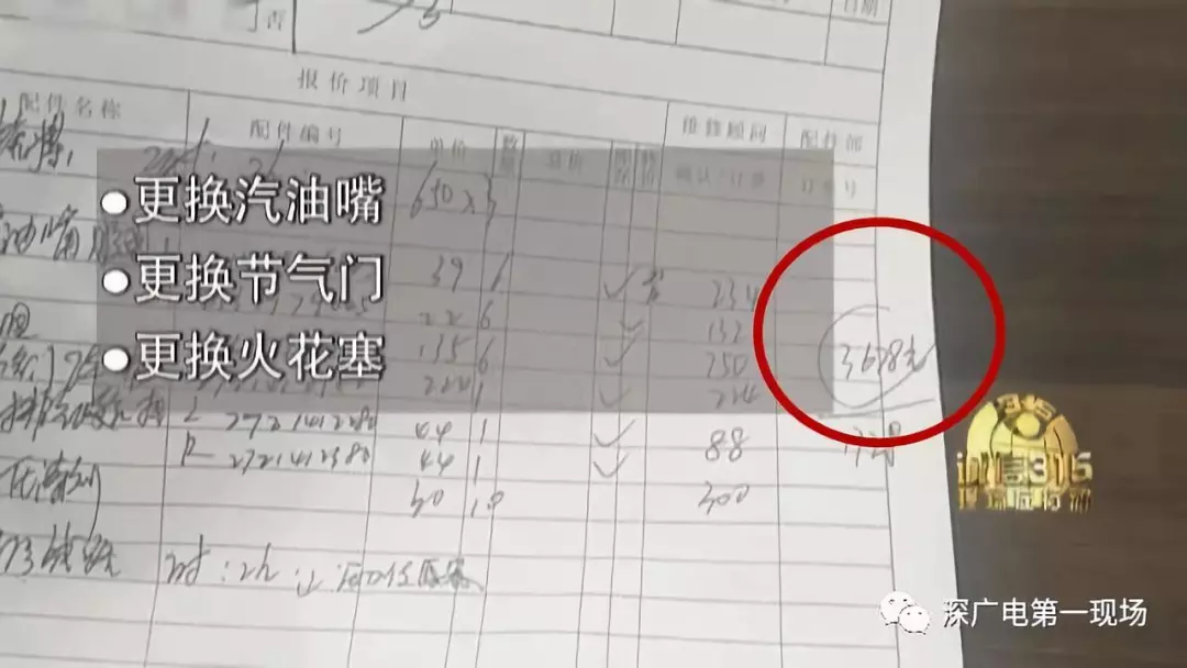 而这个小故障在经过大兴奔驰罗湖店的检查后,却被开出3600多元的维修费,包括更换喷油嘴胶圈、节气门垫等部件,以及工时费。