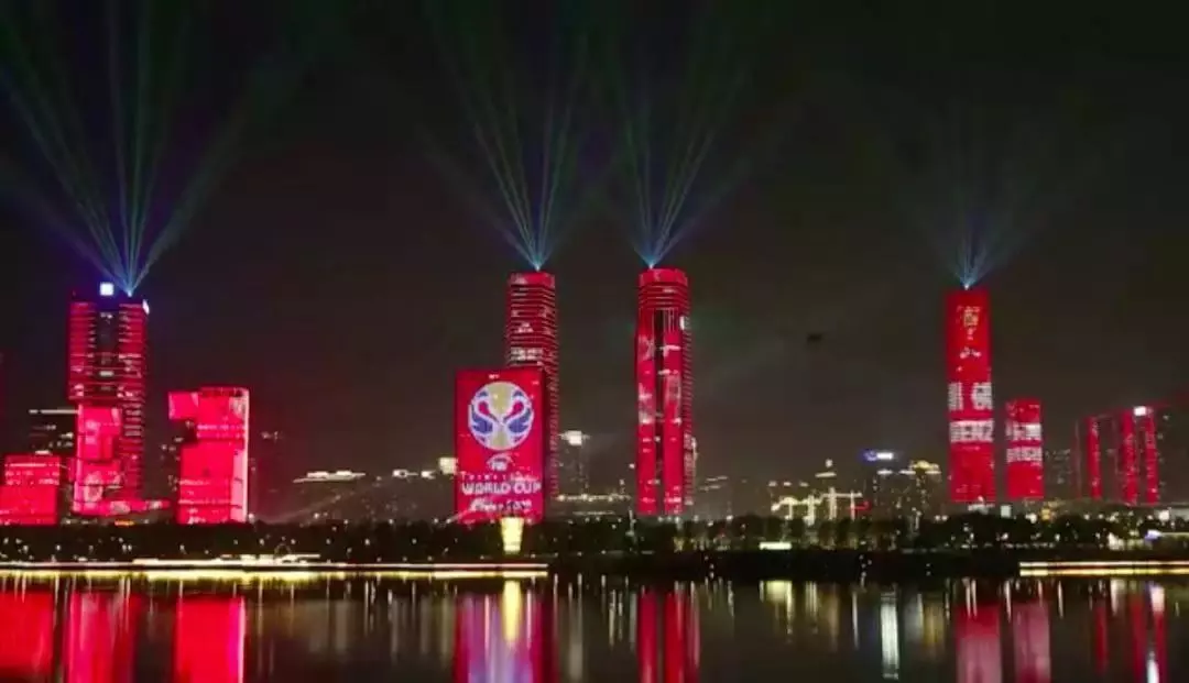 整个灯光秀时长8分钟,分为四个篇章:深圳欢迎你,世界的篮球,赛场与激情,荣耀与梦想。