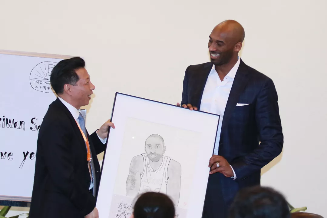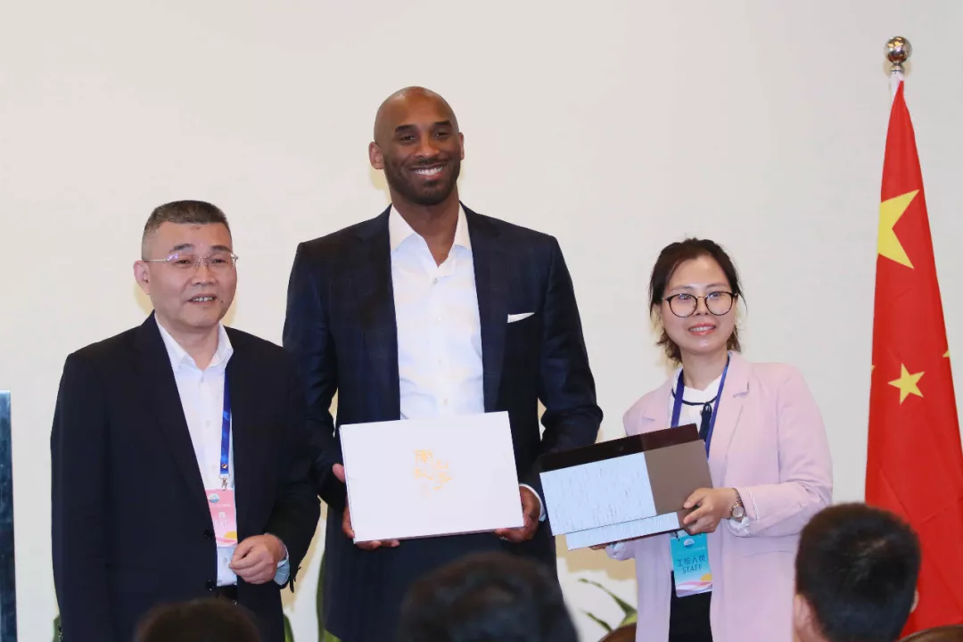 科比对南山区表示感谢,并称赞南山的环境太美,特别点赞了南山的篮球主题灯光秀。