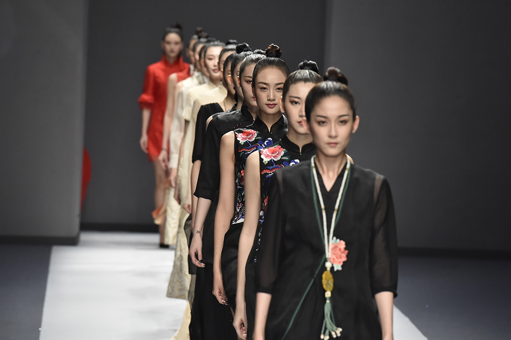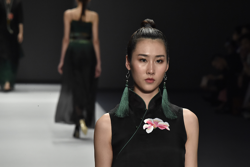 模特正在展示品牌Sunshine见花开的服装花朵作为设计的一部分凸显东方美感