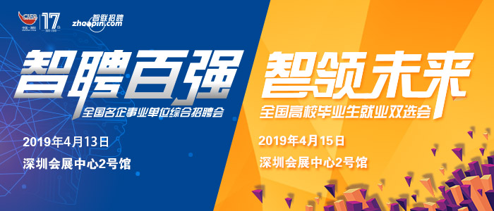 四月的深圳将迎来一波大春招,第十七届中国国际人才交流大会将于4月14日 -15日在深圳会展中心开幕。作为大会重要组成部分,由智联招聘执行的2019年“智聘百强”全国名企事业单位综合招聘会,及“智领未来”全国高校毕业生就业双选会,将分别于4月13日、4月15日在深圳会展中心2号馆举办。