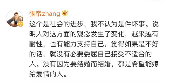 以前想着是28岁结婚,现在已经无所谓了。如果是和对的人结婚,在我心里婚姻排第一,主要还是因人而决定步入婚姻。对恋爱、结婚对象最主要的标准就是价值观要吻合。