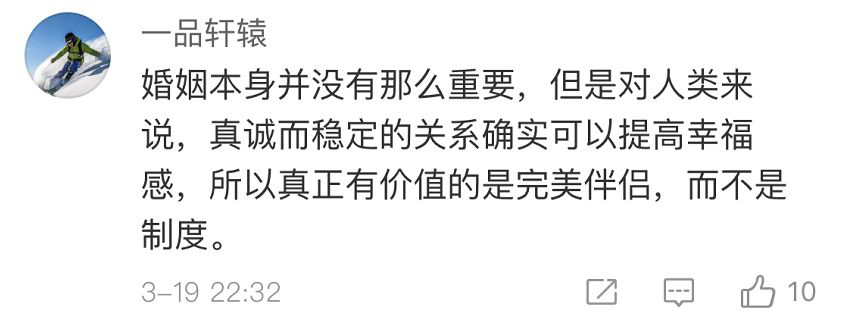 一定要遇到理想的结婚对象才会选择结婚。事业排第一,婚姻排在最后。我进入婚姻的初衷是为了让生活变得更好,而且婚姻更多还是一种合作关系,两个人在一起能够提高生活品质,经济方面相互帮助,降低生活成本,增强风险抵抗能力。身边朋友未婚的比较多,但有时看到已婚的朋友生活幸福,会有短暂的焦虑感,但更多地受到父母不幸的婚姻生活的影响,我对婚姻基本没有什么正面的期望。