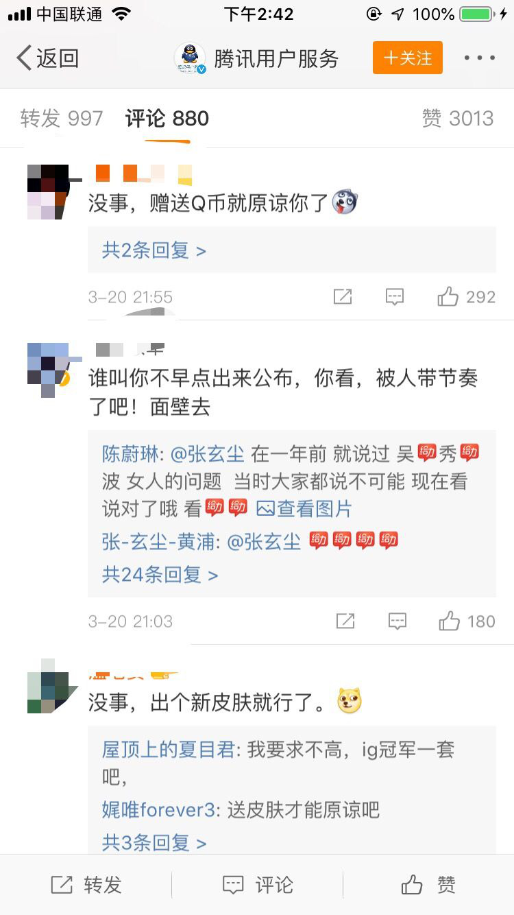 3月20日,微博认证为腾讯公司公关总监张军在微博中解释:因去年年底的一次活动中的相关描述不够清晰,目前已遵照要求完成整改。未来我们将在工作中引以为戒,避免类似问题再次出现。