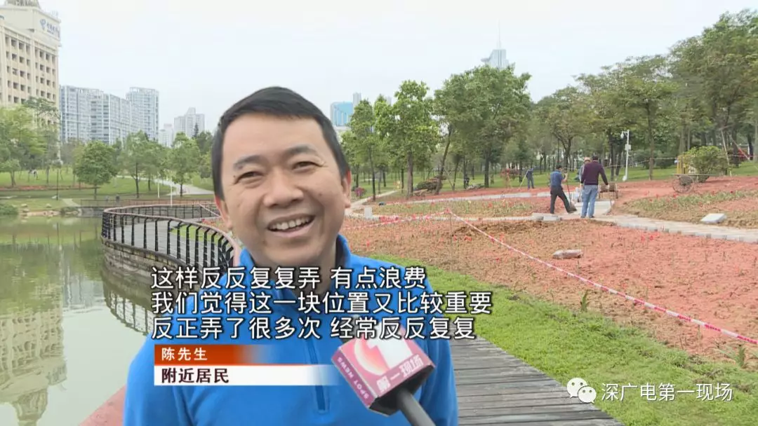 深广电第一现场2019年3月25日讯 道路反复开挖是广大市民对于城市建设过程中最不满意的一种现象。除此之外,把公园里面的绿地来回折腾也很容易引起人们的质疑,最近就有观众向《第一现场》反映。中心公园里的一块草坪,反复折腾快半年了也没弄出个模样来这到底是要搞哪出?
