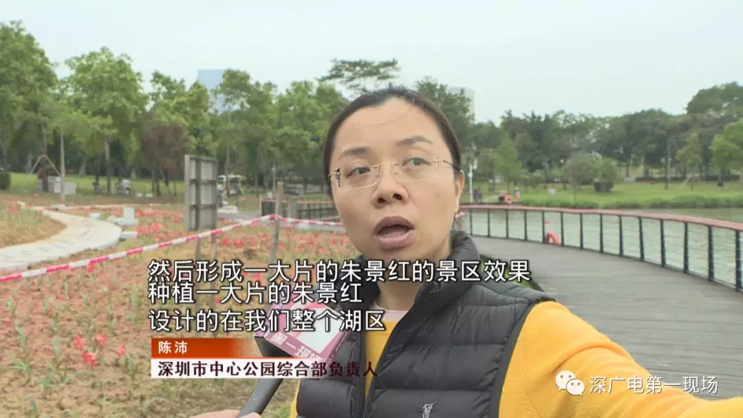 就此事记者联系了深圳市中心公园。公园方面介绍,在公园的人工湖畔,已经零零星星种植了几片朱顶红,但是没有形成景观效果。根据中心公园去年的规划,作为整体绿化提升的一部分,在人工湖南岸的弯月地带,要做相应的调整。
