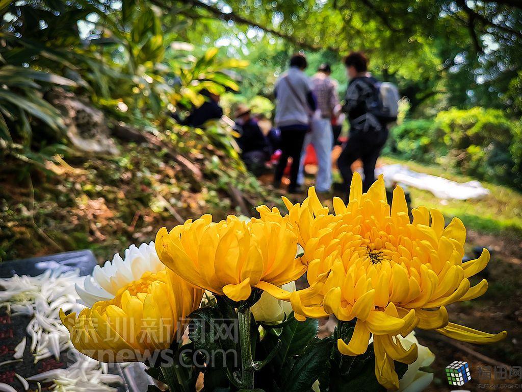 参与海树葬的家属手持献花。近年来,生态殡葬被更多的深圳人所接受。