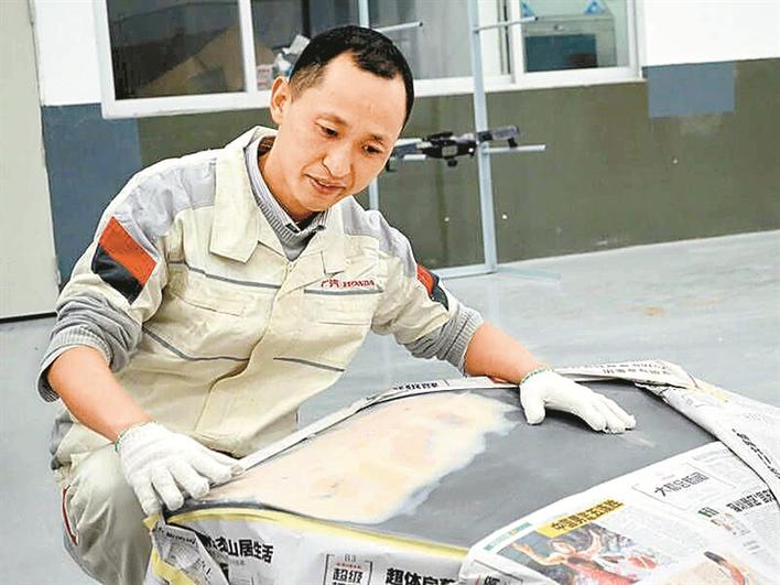 “这是我人生的第一个重要转折点。”曾斌文说,他在修理厂的5年里,通过自己的努力,学到了一门好手艺,成为一名合格的汽车维修技术人员。“当时,加班到晚上11、12点是常有的事。”在修理厂里,曾斌文学的是汽车维修漆工,主要工作是对由于刮蹭等原因而受损的汽车表面进行修复、上漆,让车身恢复原有的颜色和光泽。为了学习技术,在当学徒的那几年里,曾斌文每天起得比师傅早,活干得比师傅多。曾斌文天天拿着补刀、砂纸、打磨机、喷枪等工具在车间里埋头苦干,全身被汗水浸透是常有的事。“当时,我觉得自己年轻体力好,总想多干点活,多学点技术。”