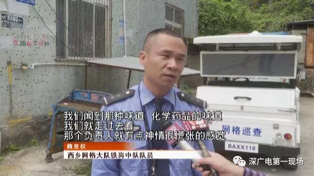 晚上8点30分,宝安西乡铁岗网格巡查中队网格员在辖区一工业园夜巡时发现一辆货车正在一仓库门口卸货。网格员发现,工人们将一个个大铁桶和塑料桶搬进旁边的一个仓库,现场散发出一股刺鼻的气味。