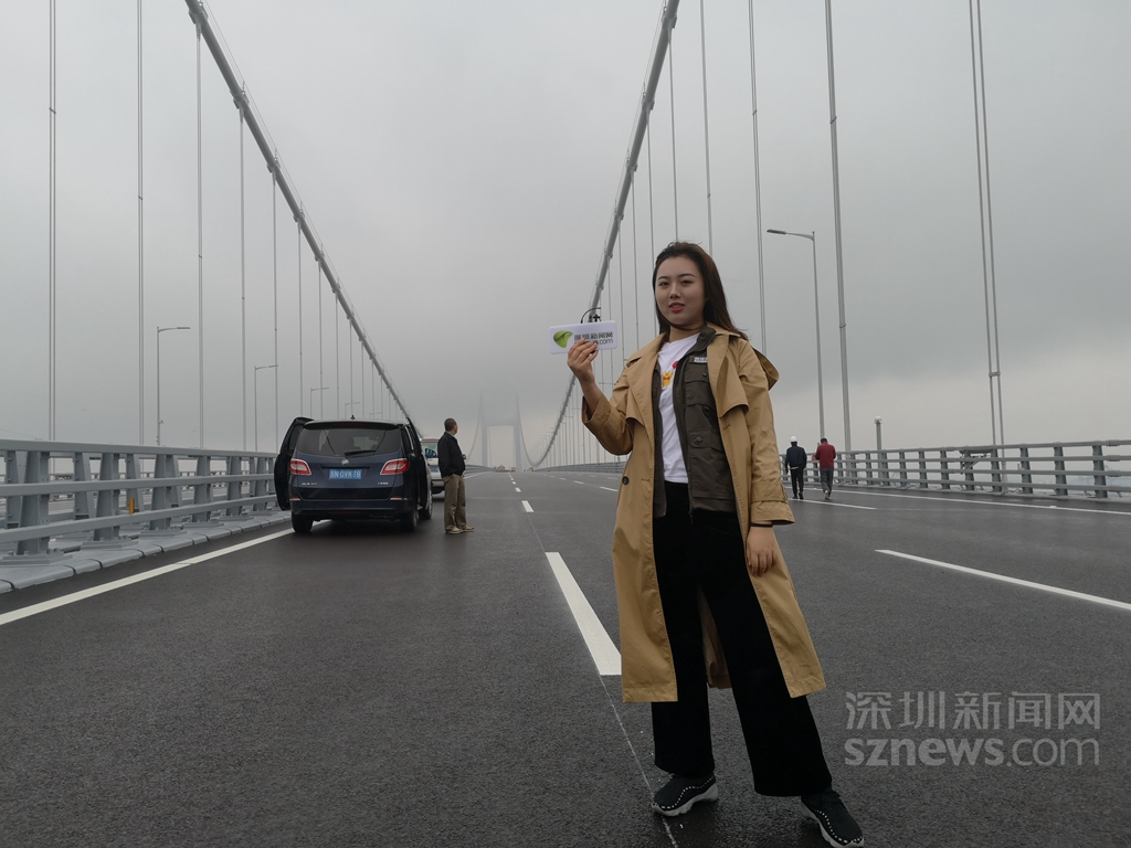 深圳新闻网记者刘彦兰在虎门二桥的直播工作照