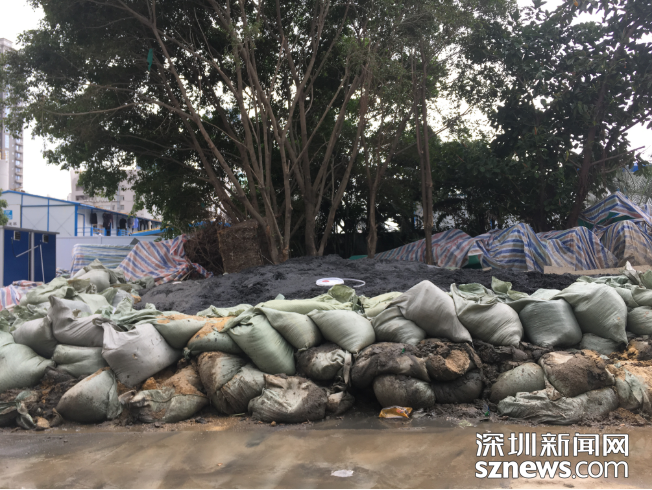 工地旁近半人高的淤泥堆积,但无明显异味