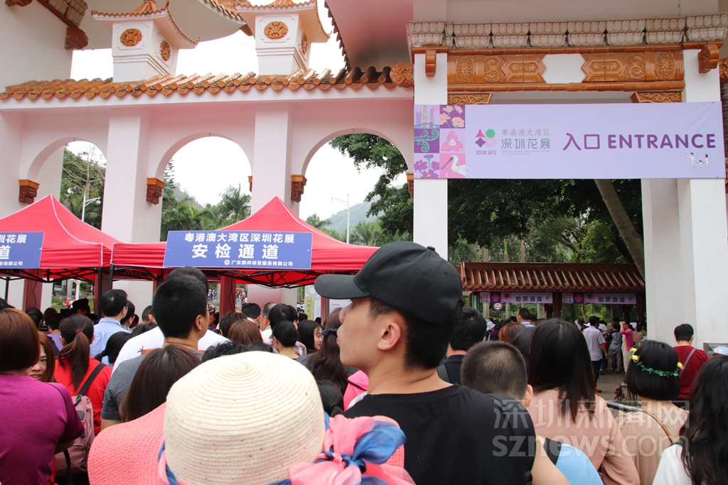 仙湖植物园入口处,排队的人需经过安检,再进入检票通道