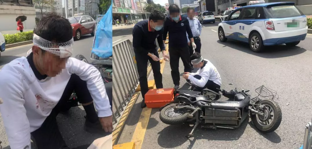 接到警情后,深圳交警立即安排民警赶往事故现场进行处理。民警到达事故现场时,发现涉事两车均停靠在事发路段上,第一时间通知120救护车达到现场,随后将受伤小伙送往医院进行救治。