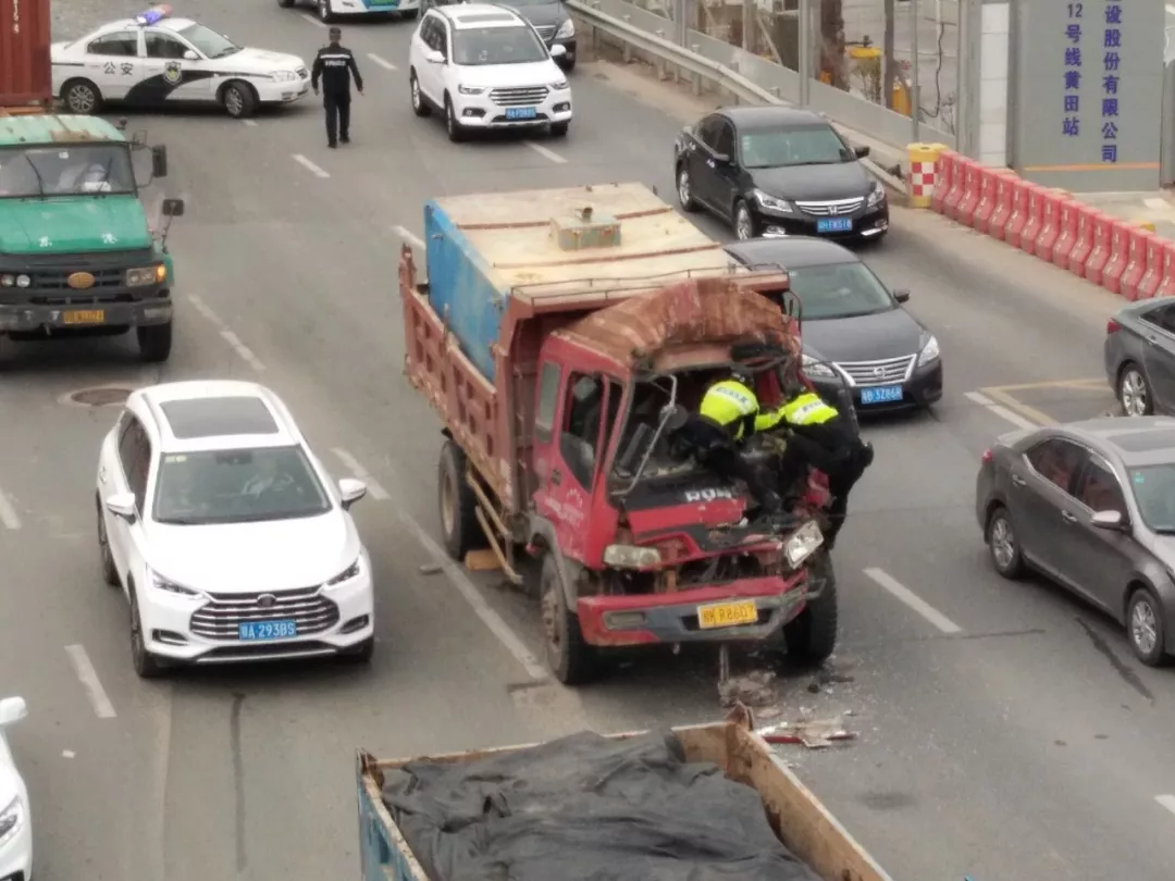 5分钟,成功施救。经过努力,交警成功将司机从车辆前窗救出,并扶至路边等待救护车。
