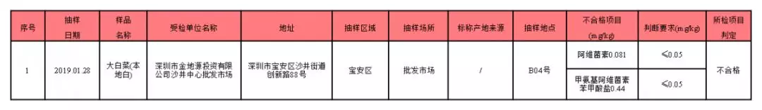 蔬菜有1份抽样样品不合格