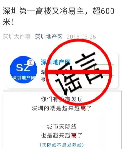 深广电第一现场2019年4月5日讯 最近有报道称,深圳第一高楼即将易主。难道这也意味着新的摩天大楼拔地而起了?这则刷屏大家朋友圈的消息今天被证实为谣言!