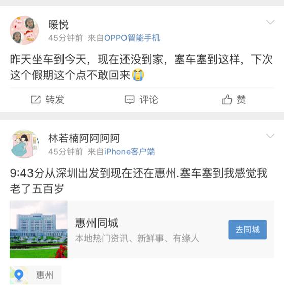 为了等待从广州回肇庆的弟弟平安到家,小编一直到凌晨3点都未能安睡。在这寂静而漫长的深夜,在朋友圈目睹许多人也堵在了路上,行车一夜,只为今天能到达目的地。