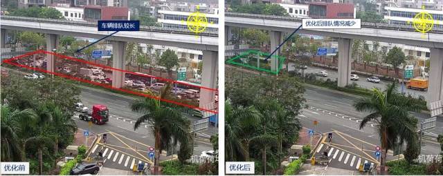 深圳交警立即使用临时方案加大北面掉头车辆放行时间,并启用三条车道同时放行左转与掉头车辆,约15分钟后路口排队现象恢复正常。