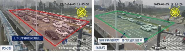 深圳交警采用远程步控及路面手动控制及时疏散积压排队车辆,约中午12点路面车流量逐渐减少,路口交通恢复正常。