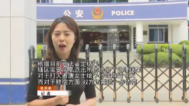 根据目前司法鉴定结果,辖区宝安凤凰派出所也给出了处理结果,对于打人者唐女士给予行政拘留十天,而对于赔偿方面,双方还需进一步协商