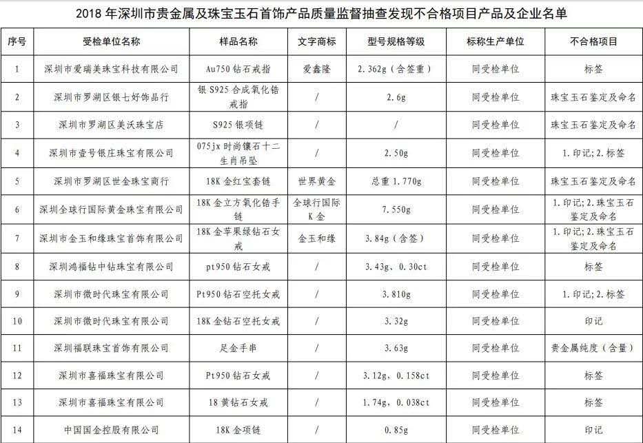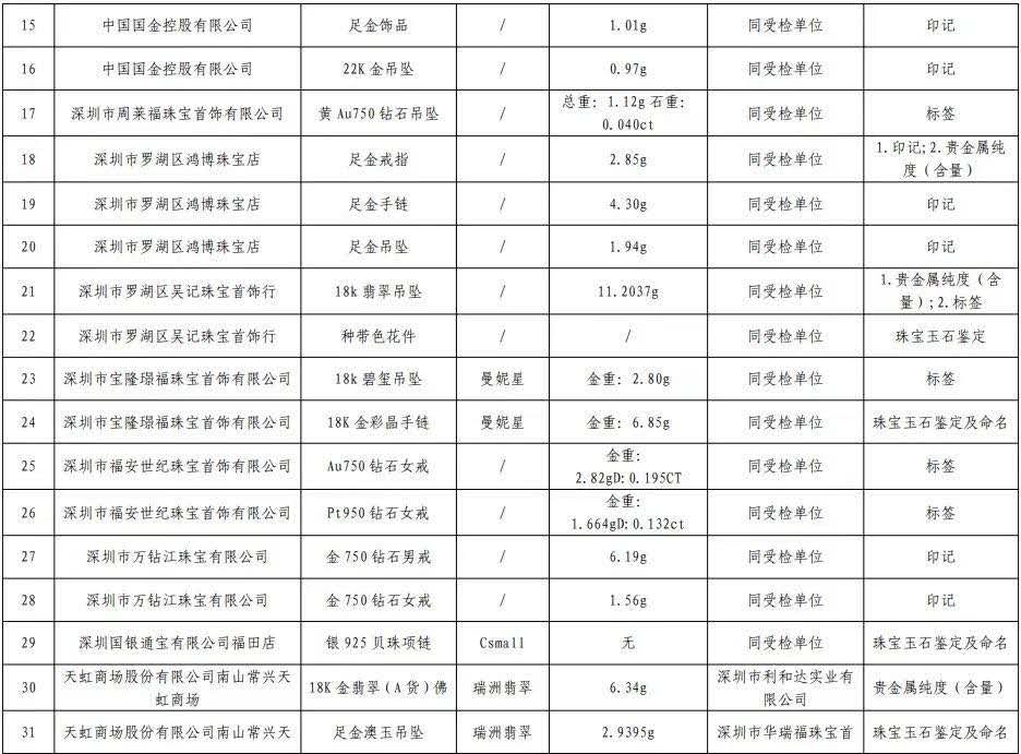 原标题:深圳最新抽检珠宝抽检结果公布不合格产品发现率16.3%