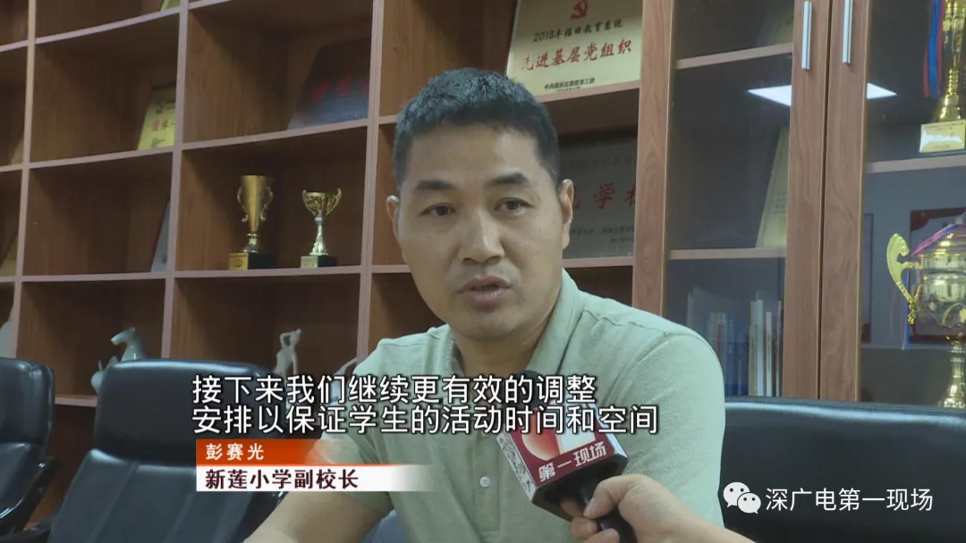 深广电第一现场2019年4月10日讯 位于福田区莲花村的新莲小学,由于学位不足决定从今年开始重建。经过校长与隔壁两百米的北环中学协商,北环中学同意在过渡期里接收新莲小学的所有师生,本来应该是件好事儿,可是有小学家长发现,自己的孩子跟初中生们在学校的情况有些不一样。