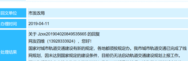 惠州市发改局还回应称,近年来,该局按照市委、市政府的工作部署,扎实推进惠州城市轨道交通规划建设工作。如参与编制城市轨道交通线网规划,组织建设规划的编制及相关的几大专项研究,为城市轨道交通发展做了许多打基础、利长远的工作。