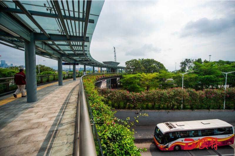 深圳特区报2019年04月14日讯 在深圳湾口岸,一座全长310米的蓝色S型人行天桥横空出世,连通口岸公交站、停车场、海关大楼和联检大楼。这座天桥已经正式建成启用,为市民提供更安全舒适的出行环境。天桥两侧种植的簕杜鹃已经盛开,行走在天桥上宛若漫步景观长廊。