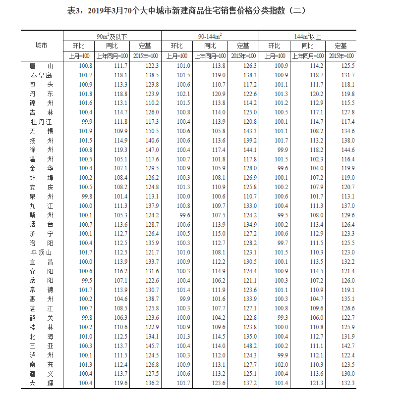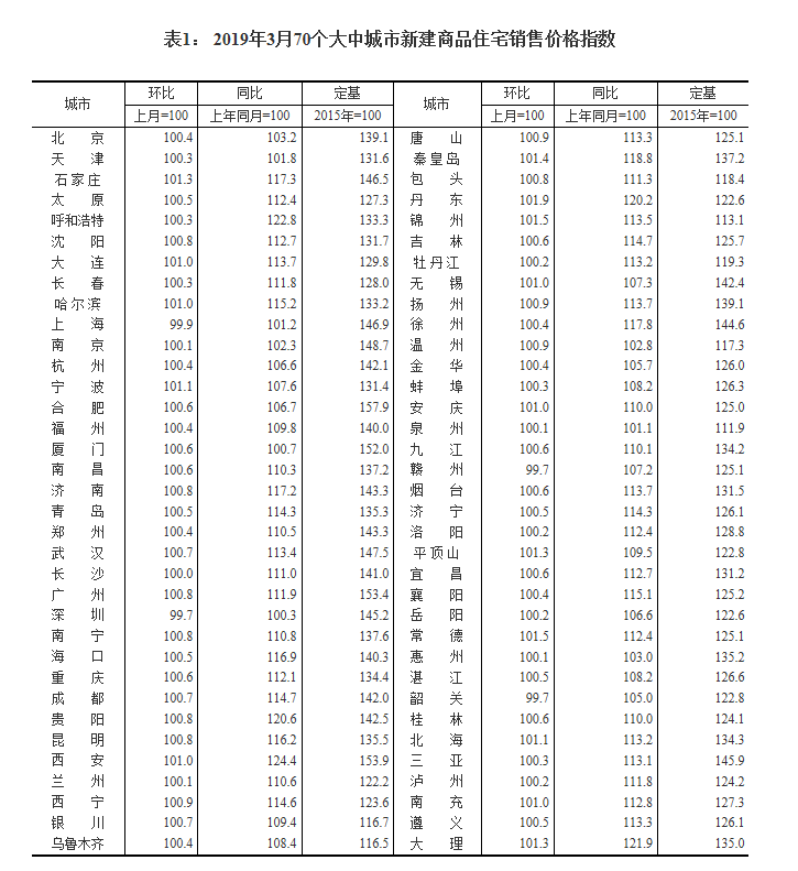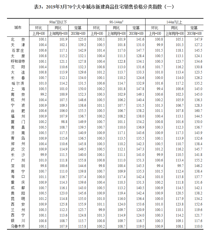 今天上午,国家统计局发布3月份70个大中城市新建商品住宅销售价格。