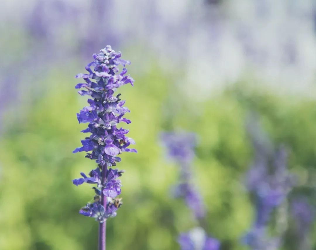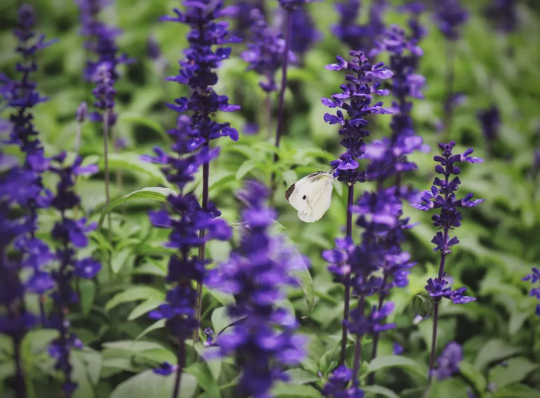 蓝花鼠尾草正式名称为粉萼鼠尾草,花瓣为蓝紫色唇形,因花朵连接在一起成串,也被称为“一串蓝”,盛开在春夏时节,常会被人误认为薰衣草,不过仔细观察还是很容易辨认的。